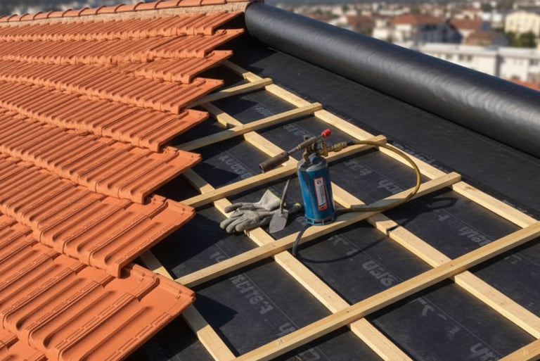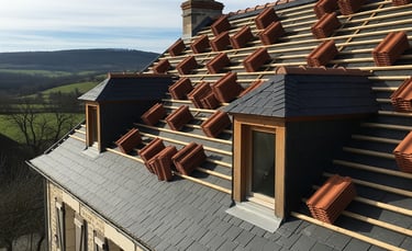 Pose et réparation de toitures, tuiles, ardoises.
